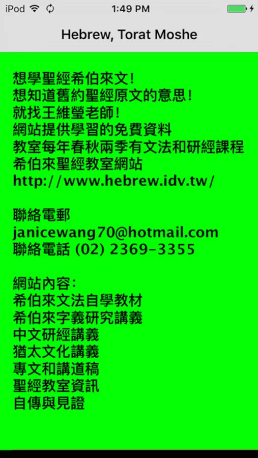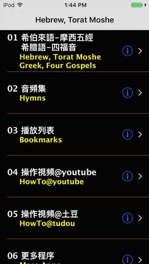 希伯來語聖經,摩西五經,有聲聖經 。 可在線播放,下載到設備後離線播放。