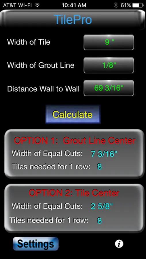 The goal when setting tiles from wall to wall is to end up with tiles at the walls that are of equal width on each side, creating a natural symmetry. This app is a simple tile layout tool that will calculate these dimensions quickly and easily. By simply entering your tile width, grout width, and distance from wall to wall, the app will give you measurements for one row of tile. It also gives you a starting point from which to set your tiles. Can also be used for any number of projects where you need to end up with and equal spacing on the ends such as wainscoting or dentils.