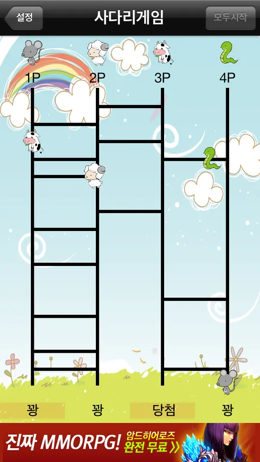7) 4번을 하지 않을 경우는 일반 사다리 게임과 같이 알수 없습니다.