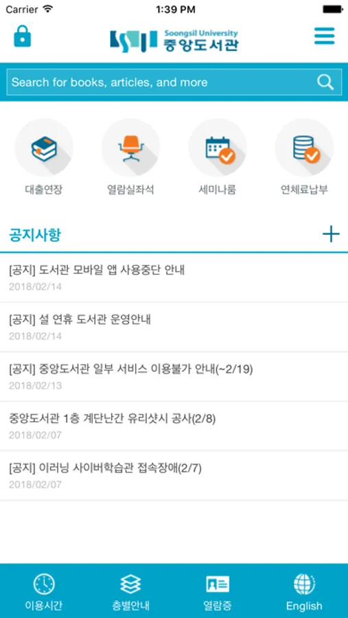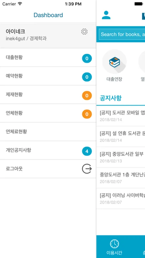 도서관 공지사항을 제공한다.