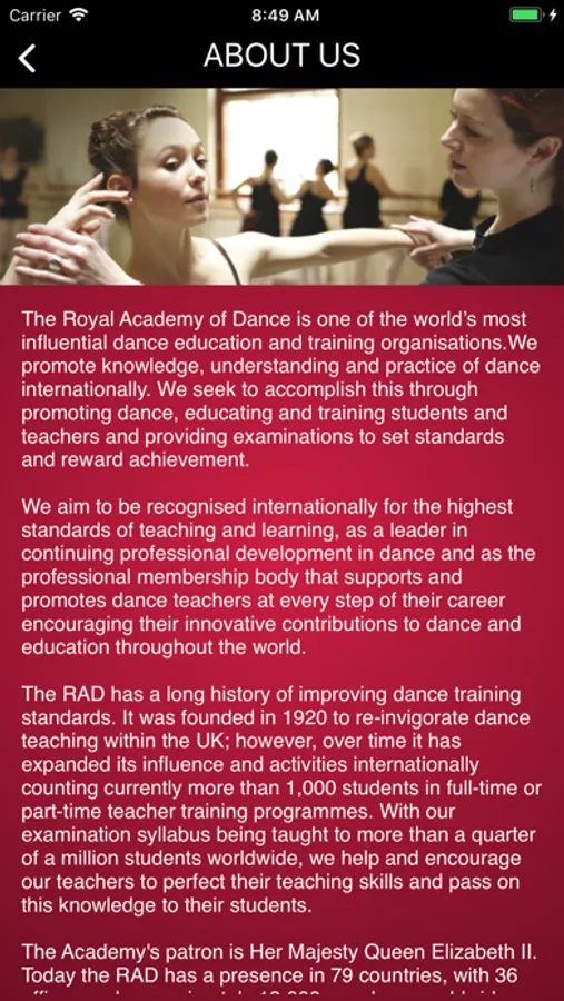 RAD Video is an authorised application of the Royal Academy of Dance and contains video content from the RAD’s Graded and Vocational Graded Examinations in Dance for the study and development of RAD teachers and students. These syllabi challenge students to meet the highest technical and artistic demands of current ballet training and performance, while also providing a way to find enjoyment, achievement and self-expression through dance.