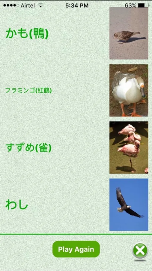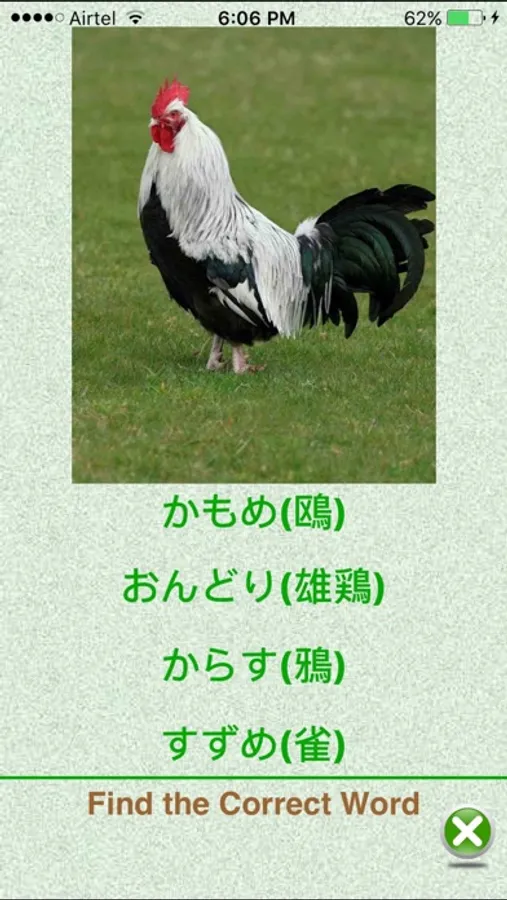 This App helps new language learner (kids to adults) to learn Japanese words in easiest way. Builds vocabulary and pronunciation of basic words in categories like Animals, Birds, Body Parts, Vegetables, Fruits, Colors, Shapes, Numbers, Calendar and Alphabet with word game. Useful for Babies, pre school or kindergarten kids and language learners of any age group adult or children. Has word Games to practice the learning.