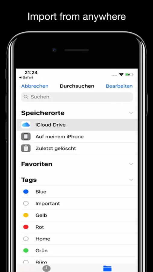 Import zip files from iCloud Drive or other cloud providers such as Dropbox or Box (app needs to be installed on the device) directly from Zip Viewer.