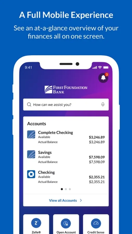 Disclosure: Some features are available for eligible clients and accounts only. There is no charge from First Foundation Bank, but message and data rates may apply. Such charges include those from your communications service provider. Delivery of alerts may be delayed for various reasons, including service outages affecting your phone, wireless or internet provider; technology failures; and system capacity limitations.