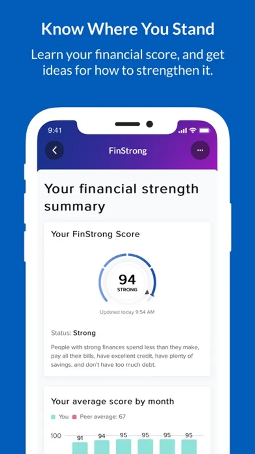 Track your overall financial health and strength with a “FinStrong” score, and learn about actions you can take to progress and attain your goals.