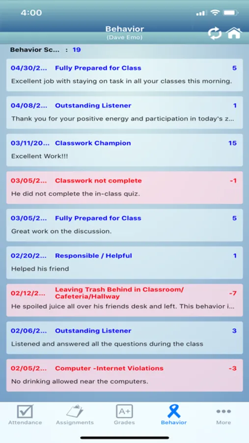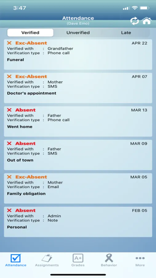 Parents receive push notifications for their students' grades, behavior incidents and attendance.