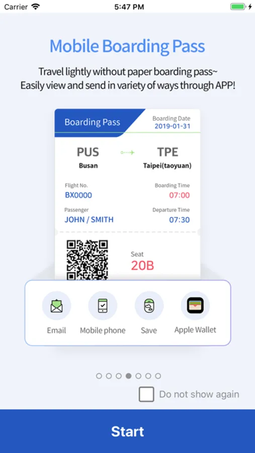 - Mobile boarding pass: Can save the boarding pass in application and airplane mode.