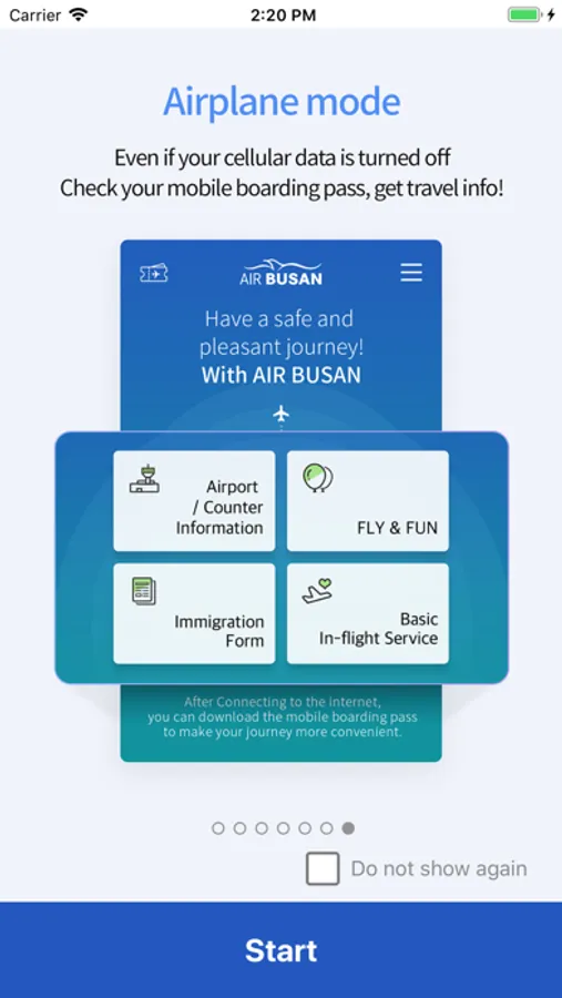 - Airplane mode contents: Mobile boarding pass / Airport & counter information, FLY&FUN, Immigration form, Basic in-flight service)