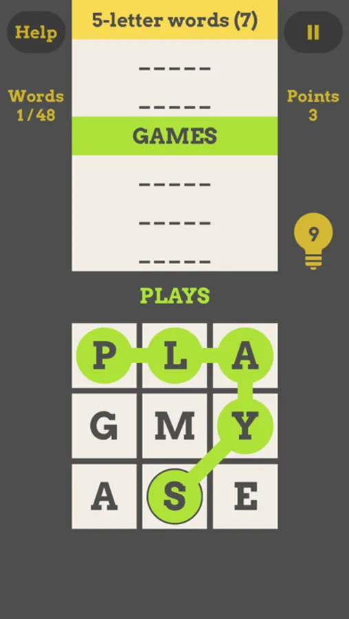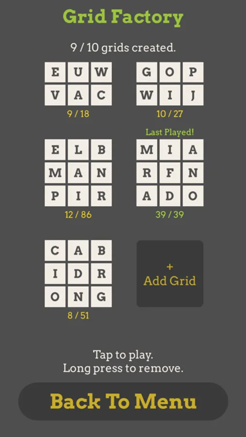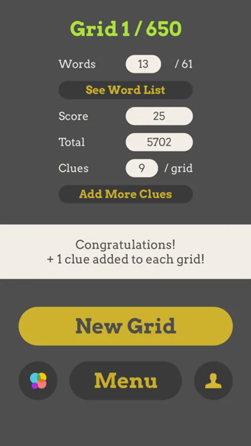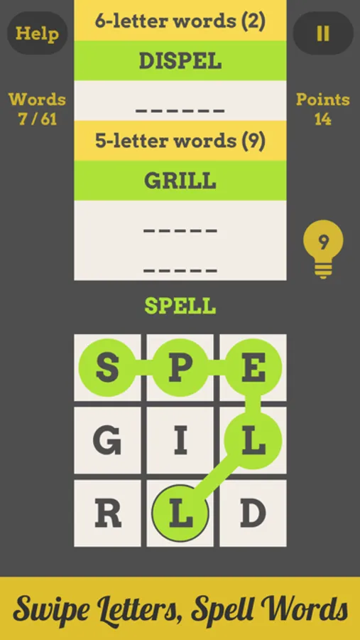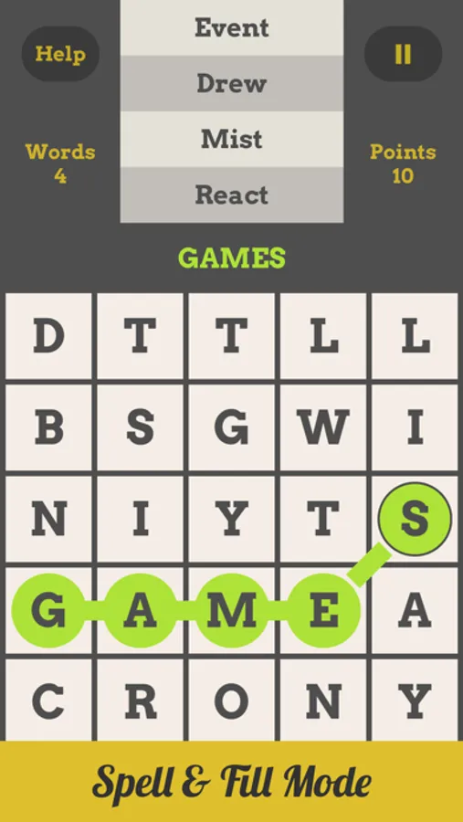 Once you spell a word, the used letters will disappear and new ones will fill the grid.