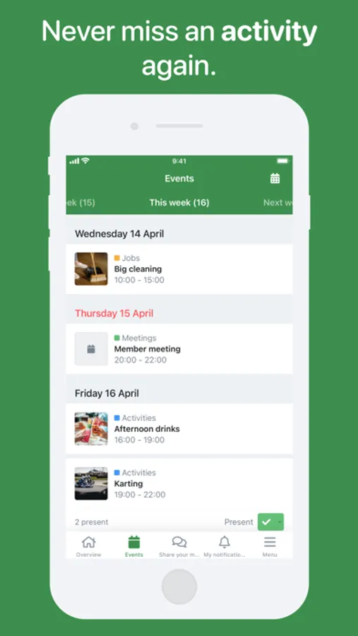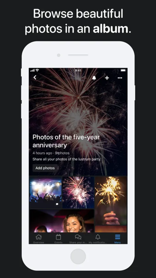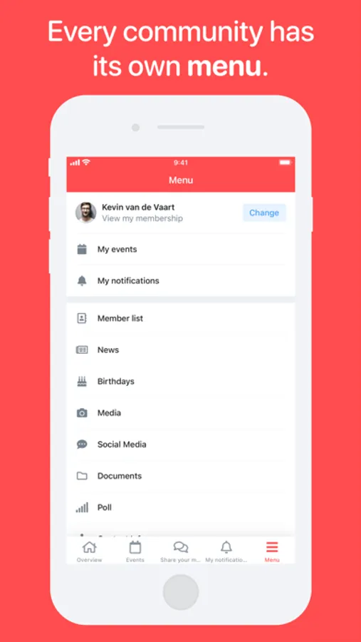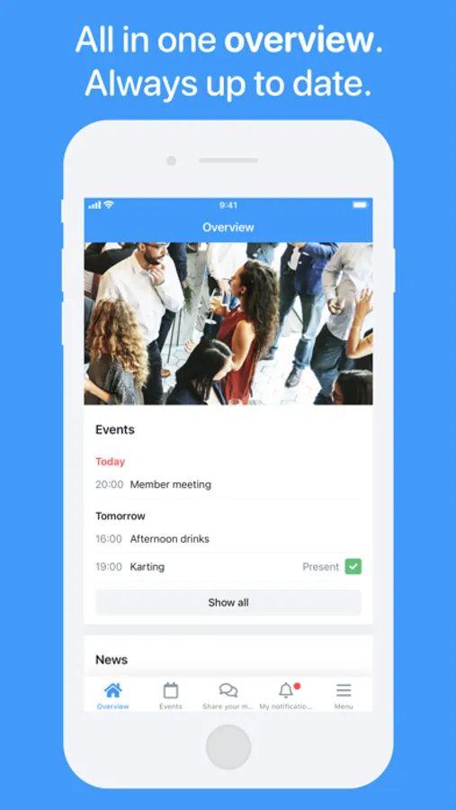 The fully customizable Socie app can contain your news, events, documents, social media, photos and an overview of all community members. Discover all the possibilities by creating your own community app.