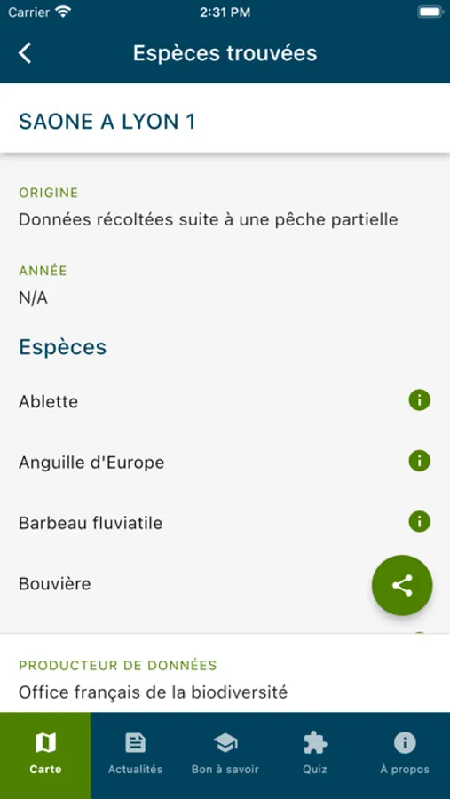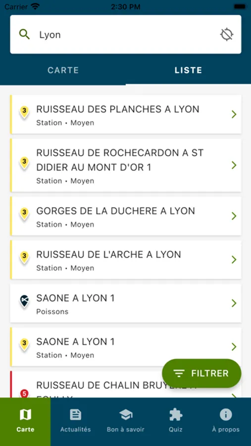 L’application « Qualité rivière » permet de repérer facilement l’état écologique des cours d’eau ainsi que les espèces de poissons vivant dans les rivières de France.