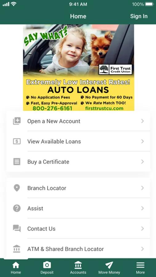 First Trust Credit Union Mobile provides members convenient access to our website, mobile check deposit, mobile banking, branch and contact information.