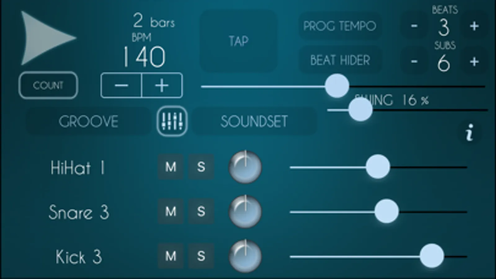 - Create your own rhythm patterns using the Pattern Creator tool, easier than a sequencer.