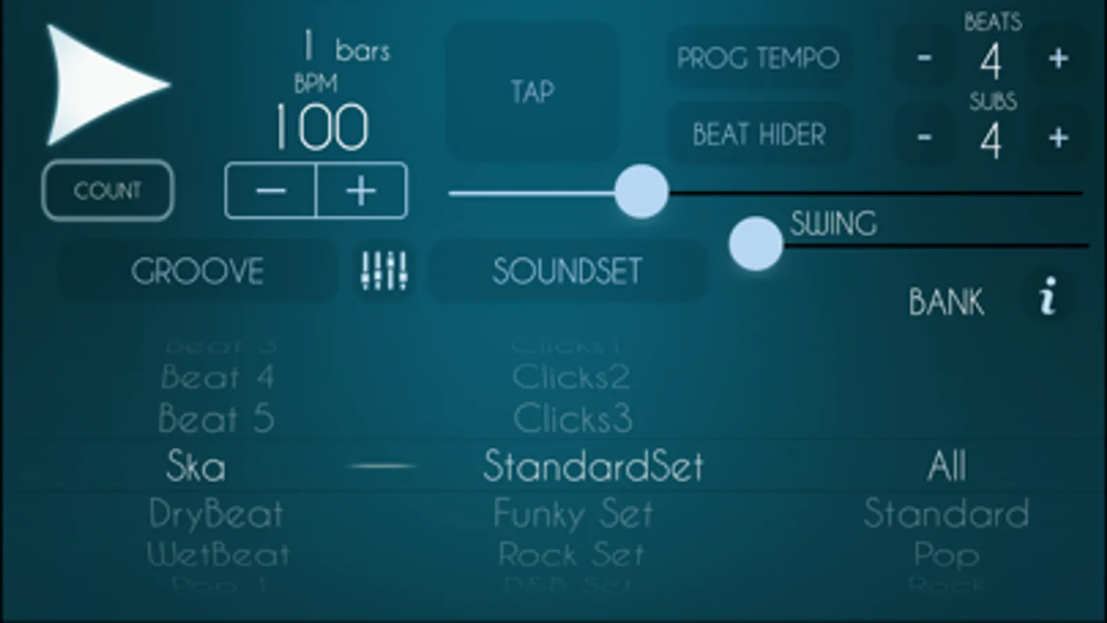 - Choose the number of beats and subdivisions.