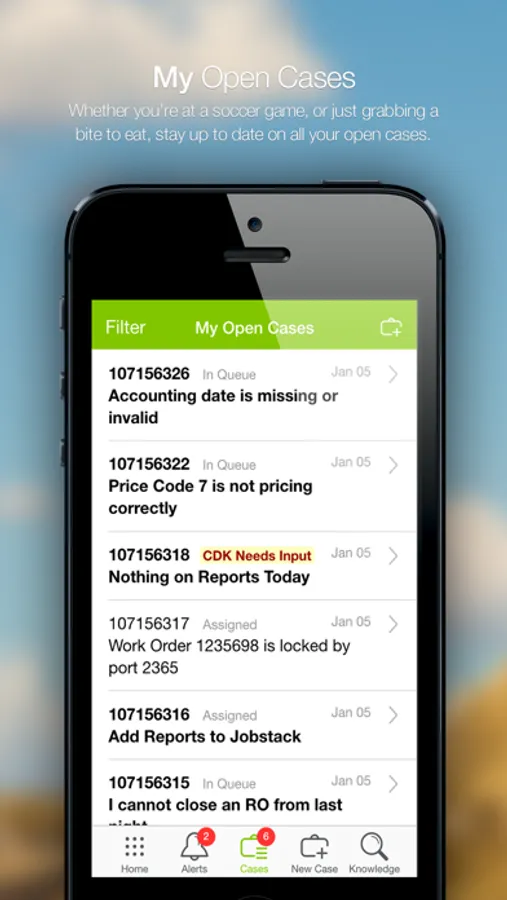 Service Connect Mobile keeps you connected to support from anywhere, at any time. Interact with support by creating/updating cases, receiving alerts and push notifications, searching knowledge sources, and even contacting your CDK Client Account Manager while you’re on the go. Whether working at your own dealership or at an event across town, you can always stay connected to your support needs.