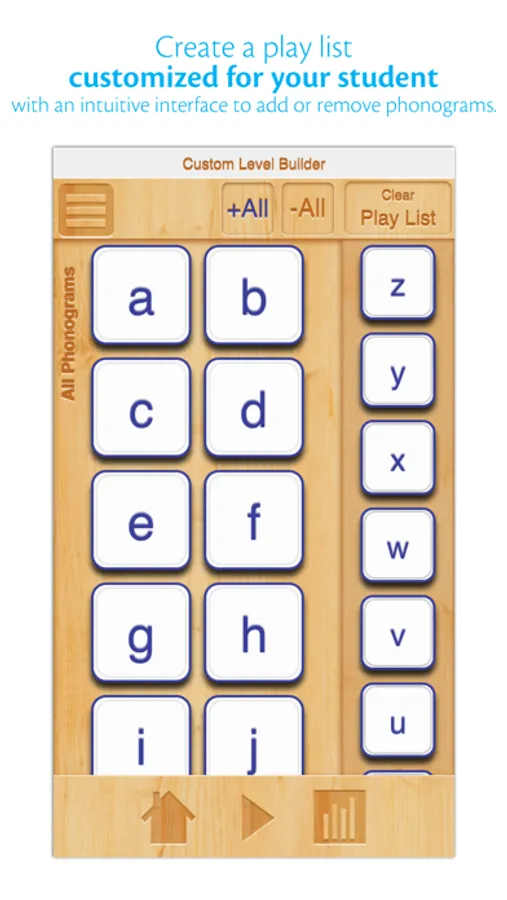 - Select lowercase, uppercase, and multi-letter phonograms to create a custom game.