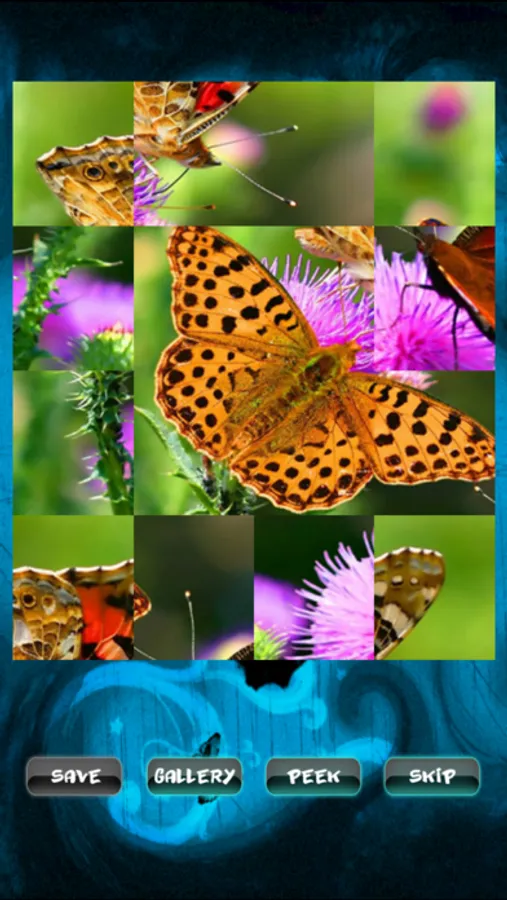 Enjoy of high quality images. The game contains 60 levels with beautiful butterfly pictures. Drag the pieces to the right place to create the image. Use "Peek" button to preview the original image. Completed levels will be unlocked and you can save images to your phone photo gallery. If you can not complete any level you can simple skip it and try to complete it later. Just press "Skip" level button to skip current level.