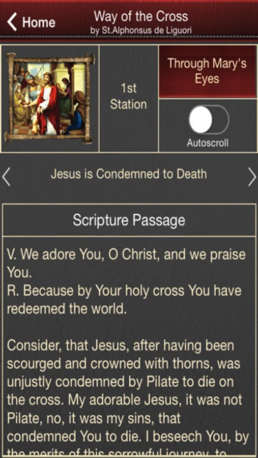 For example, if a user has 30 minutes and they’d like to utilize that time to prayerfully reflect on our Lord’s passion, they can set the mode to 30 minutes & select the start time. The entire passion would then complete in approximately 30 minutes.