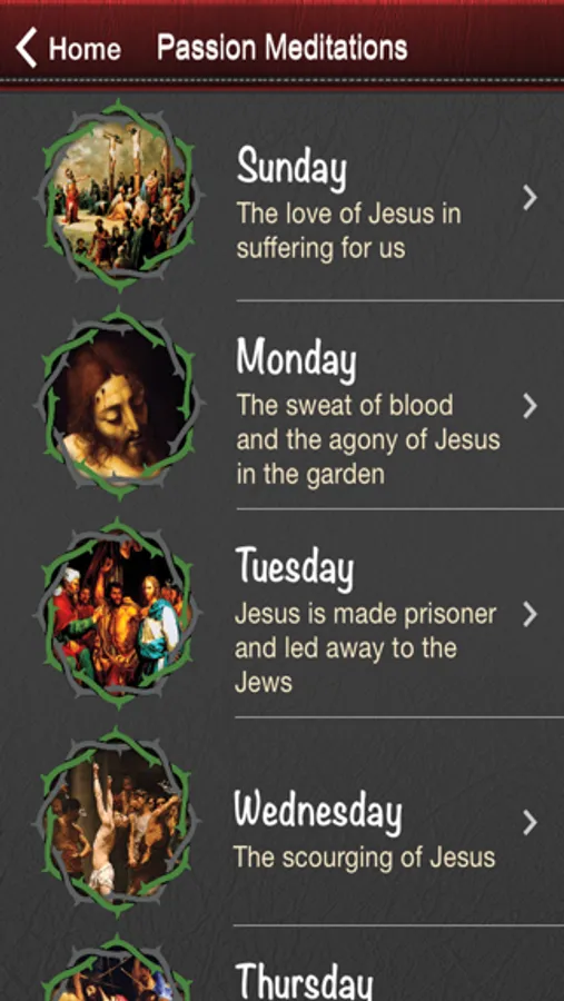 Each meditation presents the user (based on user’s local time) with the respective passion image. Each image has a corresponding reflection, response and suggested prayer intentions. While the user is encouraged to pray for their own personal intentions, some common intentions are recommended as a sign of our unity, for the body of Christ worldwide.
