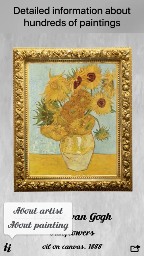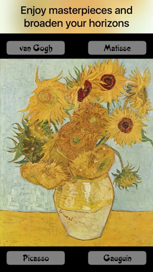 The essence of the game is very simple: in each level you see 7 paintings and should guess the artists by selecting from four variants. Levels are divided by country, by museums, and by genres. The number of errors allowed to pass the level gradually decreases, so go through the game to the end can only really big expert in painting.