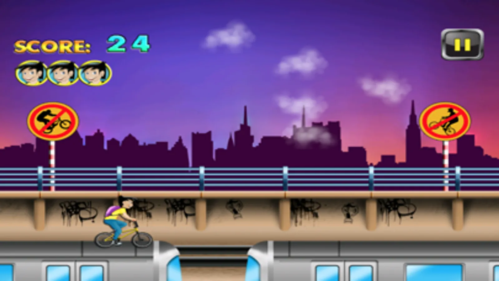 Join biker boy as he dodges bullies and obstacles above a subway. Tap and jump to play this endless fun runner.