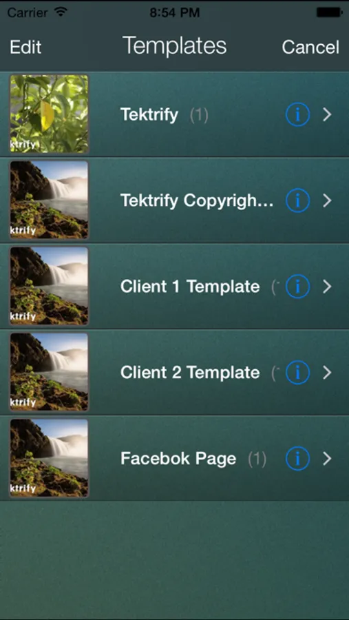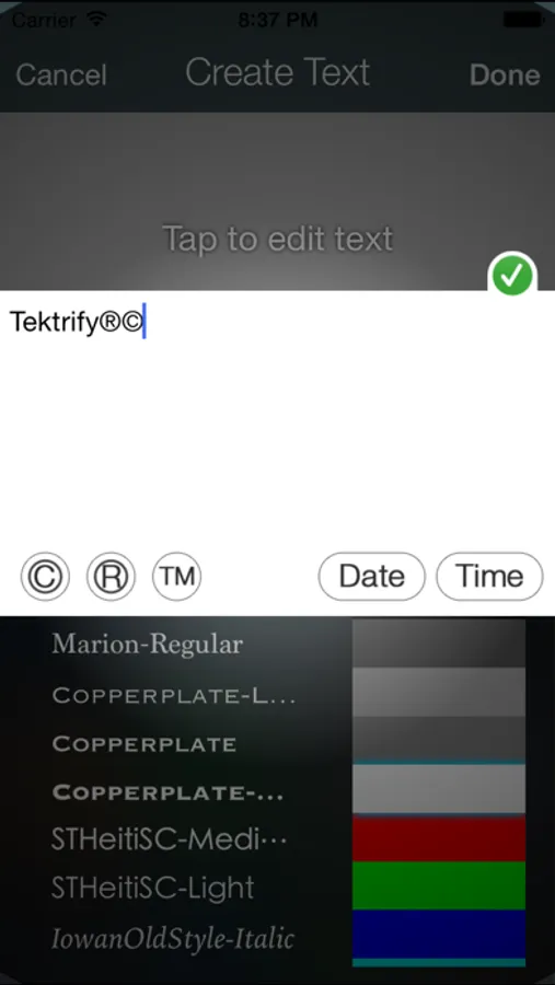 A: To do that you need to make the .png graphics on your computer, email it to yourself, open the email on your iOS device and save to your photo album. In iStamp, to create a graphic watermark and choose the graphic from your photo album to add it as a new watermark.