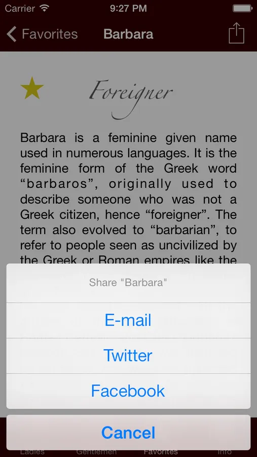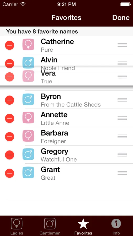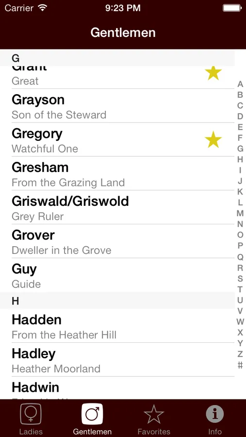 - Add to your own list of favorite names with no need to register, just by tapping the star next to the names you like;