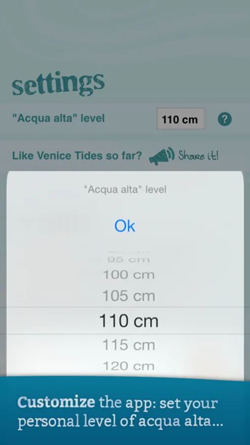 · Customize your app by setting the ‘acqua alta’ warning level as you please