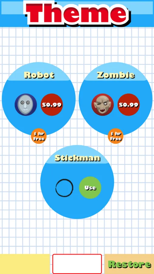 Reward Ads available. Watch a reward ad for 1 hour access to both Robot and Zombie themes.