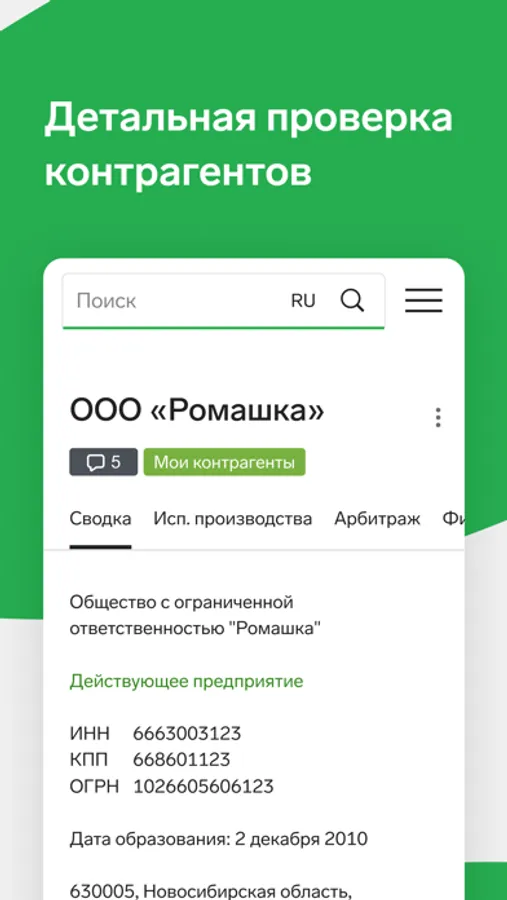 Мобильное приложение сервиса проверки контрагентов Контур.Фокус.