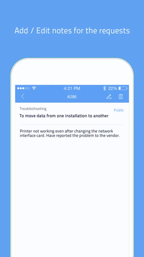 ManageEngine ServiceDesk Plus MSP integrates your help desk requests and assets to help you manage your clients' IT infrastructure effectively. It has been designed to handle multiple clients in a single Help Desk, so the Managed Service Providers (MSPs) don’t have to juggle with multiple software. This app lets your technicians create, access and resolve requests from any place, anytime. It reduces the response and resolution time of a technician dramatically, increasing the efficiency of your help desk team. It also gives you better user experience.