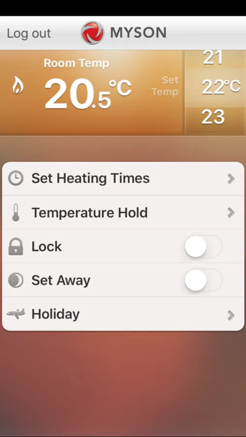 Securely control your heating from any location. If you’re leaving the office early, use the Myson app to turn on your heating in time for your arrival. You will need a router with port forwarding and a fixed IP address or the use of a Dynamic DNS.