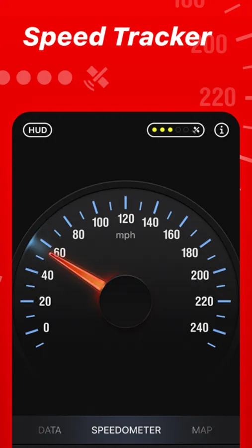 Head-up display – outstanding feature available in Speed Tracker application. Just enable HUD and put your iPhone or iPad under the windshield. Specially designed HUD interface will display the most accurate speed right on the windshield.