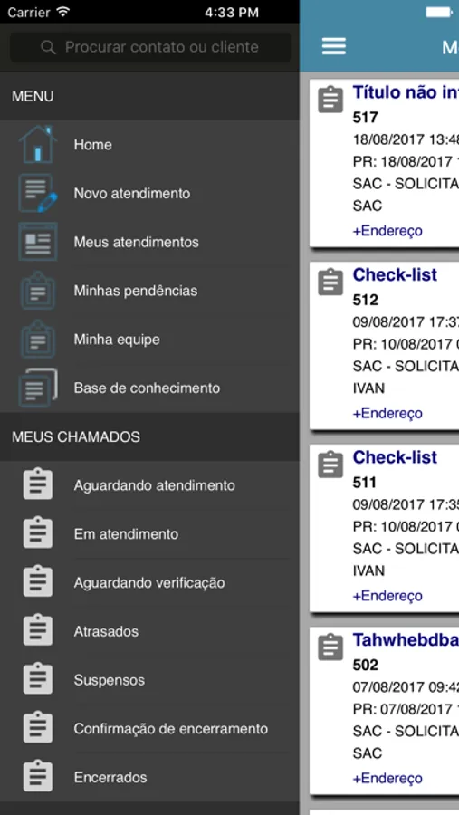 • Access to requests to be worked by technicians or agents, as incidents, service requests and tasks as well