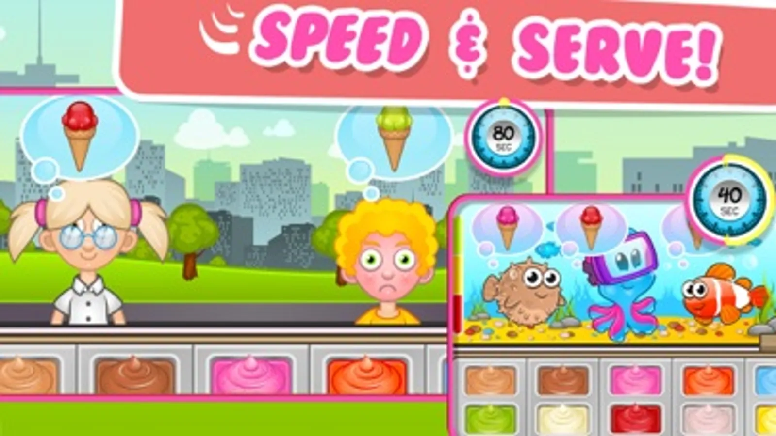 Make ice cream & discover exotic places around the world, under the sea and even outer space! Hurry up, your customers are waiting. The more ice cream you make the more places you get to visit.