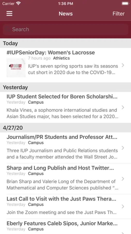 Log in with your IUP Network ID—the same as MyIUP—to access your schedule, your grades, the campus Find People directory, a calendar of university events, push notifications, an interactive map, MyIUP integration, coverage of athletic events, links to IUP on YouTube and LinkedIn, and more.