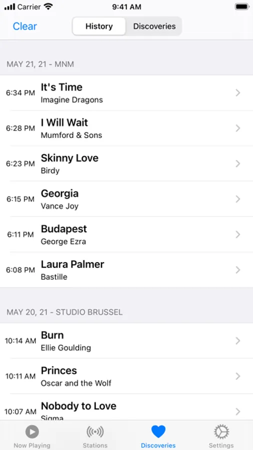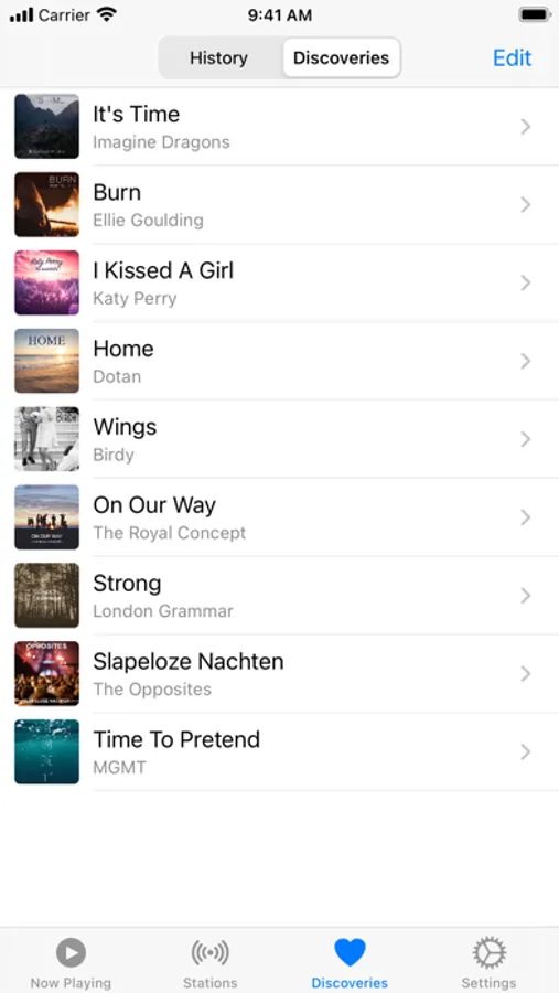 • Add songs to your discoveries and listen again to them later