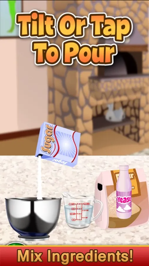 Create your very own pizza pie with Pizza Baker Salon! Start by choosing your pizza shape. Then add yeast, sugar, water and flour. Choose your ingredients and mix them into the bowl. Tilt the device or tap the screen to pour.