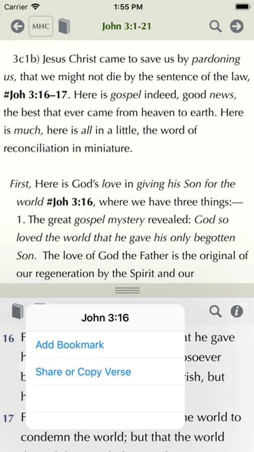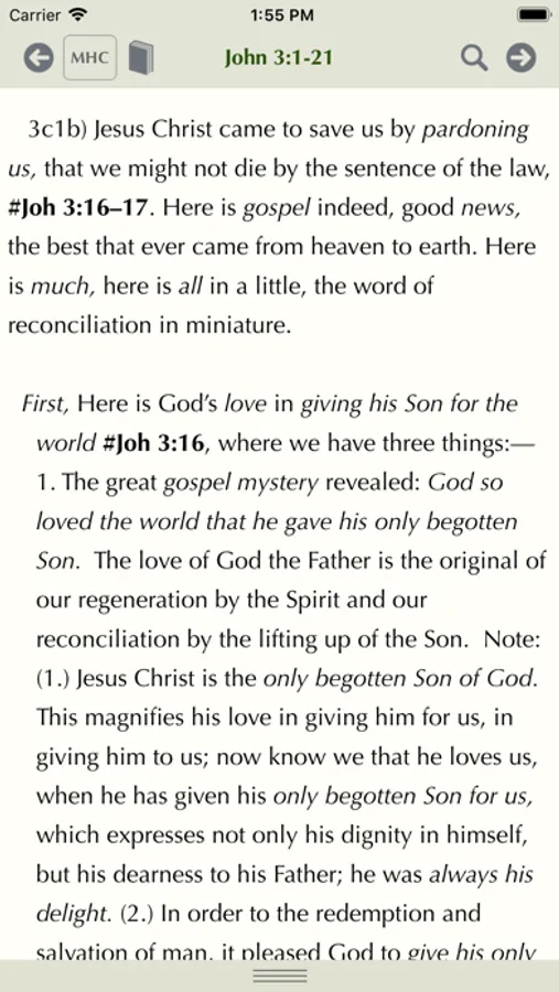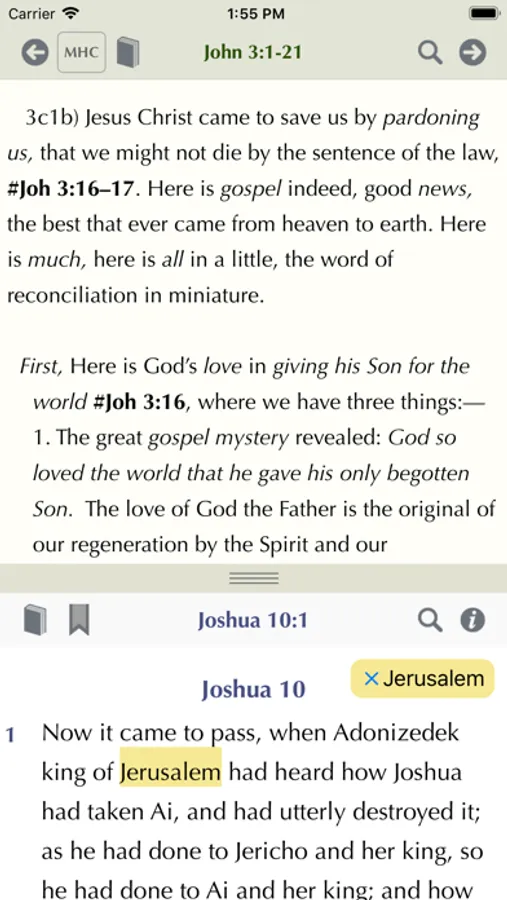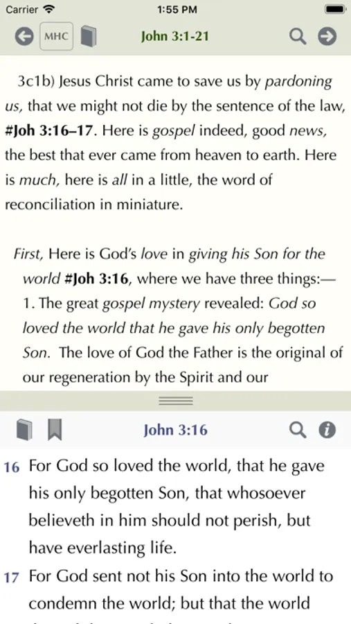 - Possibility of having the text of the Bible and the Matthew Henry commentary side by side