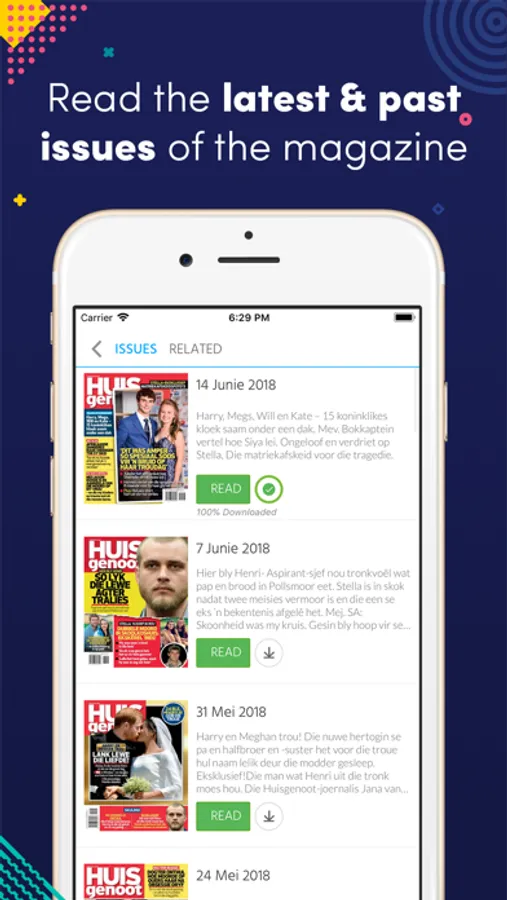 Huisgenoot, Suid-Afrika se topverkopertydskrif, is nou beskikbaar as ‘n e-tydskrif. Dié gewilde gesinstydskrif met sy unieke redaksionele samestelling dek onderwerpe so wyd soos onder andere menslike dramas, mediese en wetenskaplike ontdekkings, nuus van algemene belang, verbruikersake, mode- en glansartikels, fiksie, sport, motornuus, handwerkartikels, resepte, tuis- en skoolprojekte, blokkiesraaisels en opwindende wedstryde.