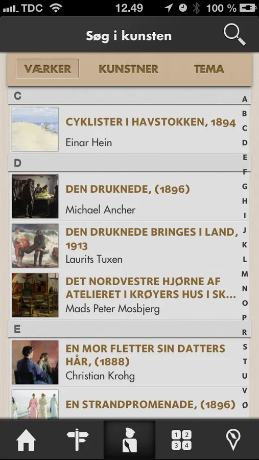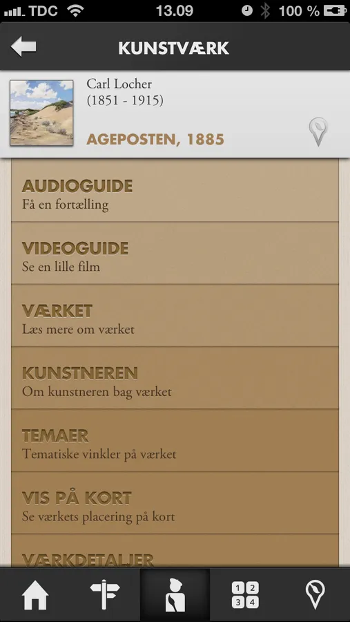 Her finder du en guldgrube af viden om skagensmalerne gengivet i billeder, tekst, lyd og film. App’en indeholder mange gengivelser af værker fra Skagens Museums samling. Man kan komme helt tæt på værkerne med en zoomfunktion og høre små fortællinger om værkerne og kunstnerne fortalt af museets direktør og inspektører. Desuden er der lavet små film om nogle af værkerne og om nogle af stederne med tilknytning til skagensmalerne fx museumshaven, Brøndums Hotel, Havehuset etc. Man kan også få information om museets aktuelle særudstillinger, ligesom der er et kort med mulighed for fx at gå i Krøyers fodspor rundt i Skagen. Ved flere af kunstværkerne er der mulighed for på et kort at se, hvor i Skagen værkerne er malet. App’en indeholder desuden praktiske informationer om åbningstider, priser samt hjælp til at finde vej til museet.