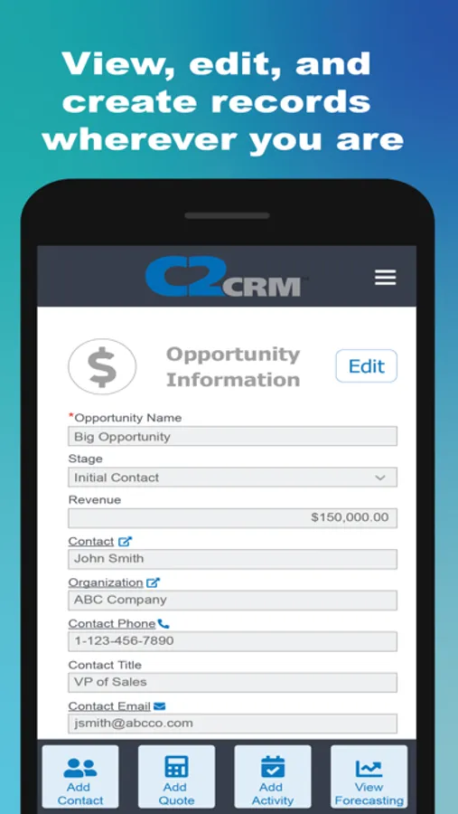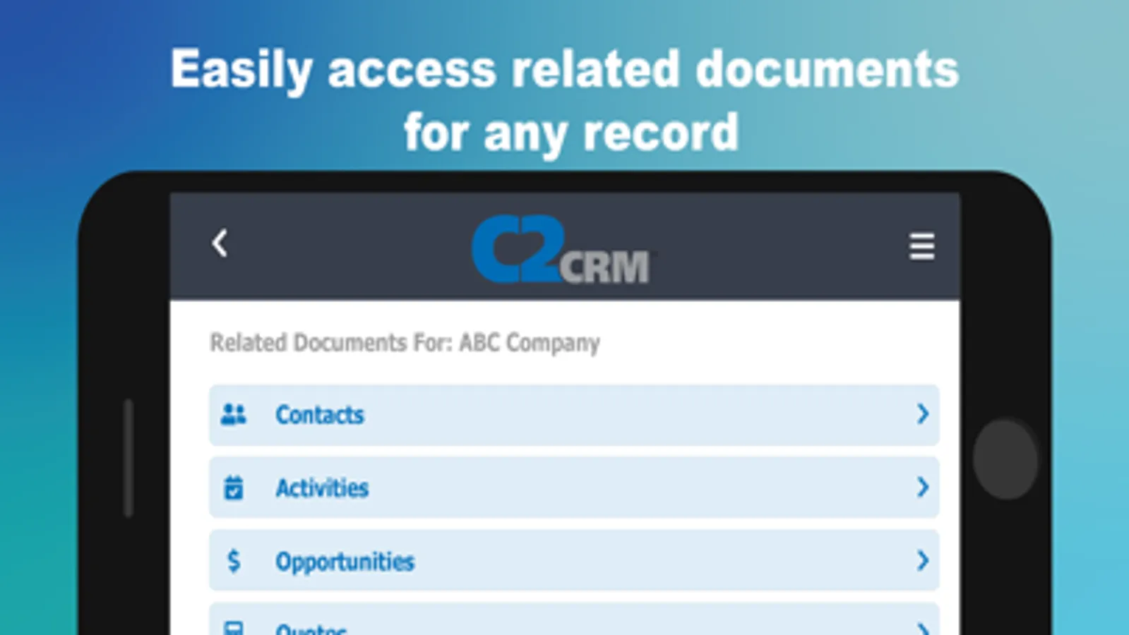 This application is designed to be C2CRM on the Go for your tablets and phones.