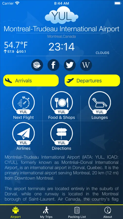 App lets you know if your flights delayed or cancelled and gives you the tools needed to quickly find an alternate flight from Montreal.