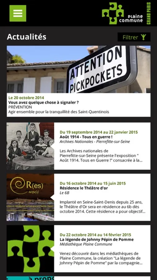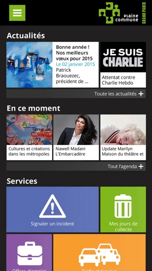 L’application officielle de la Plaine Commune (Aubervilliers, Épinay-sur-Seine, L'Île-Saint-Denis, La Courneuve, Pierrefitte-sur-Seine, Saint-Denis, Saint-Ouen-sur-Seine, Stains, Villetaneuse) se veut informative et pratique mais surtout centrée autour de l’usager.