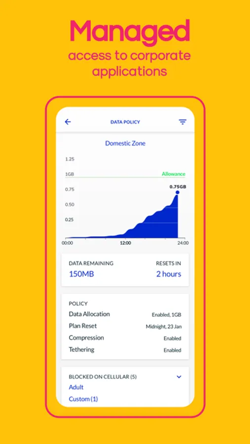- Enforces content filtering policies to comply with your company’s usage policy.