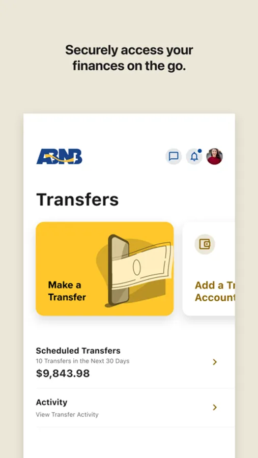 ABNB offers 24/7 mobile account access to its members anytime, anywhere using the ABNB Mobile App.