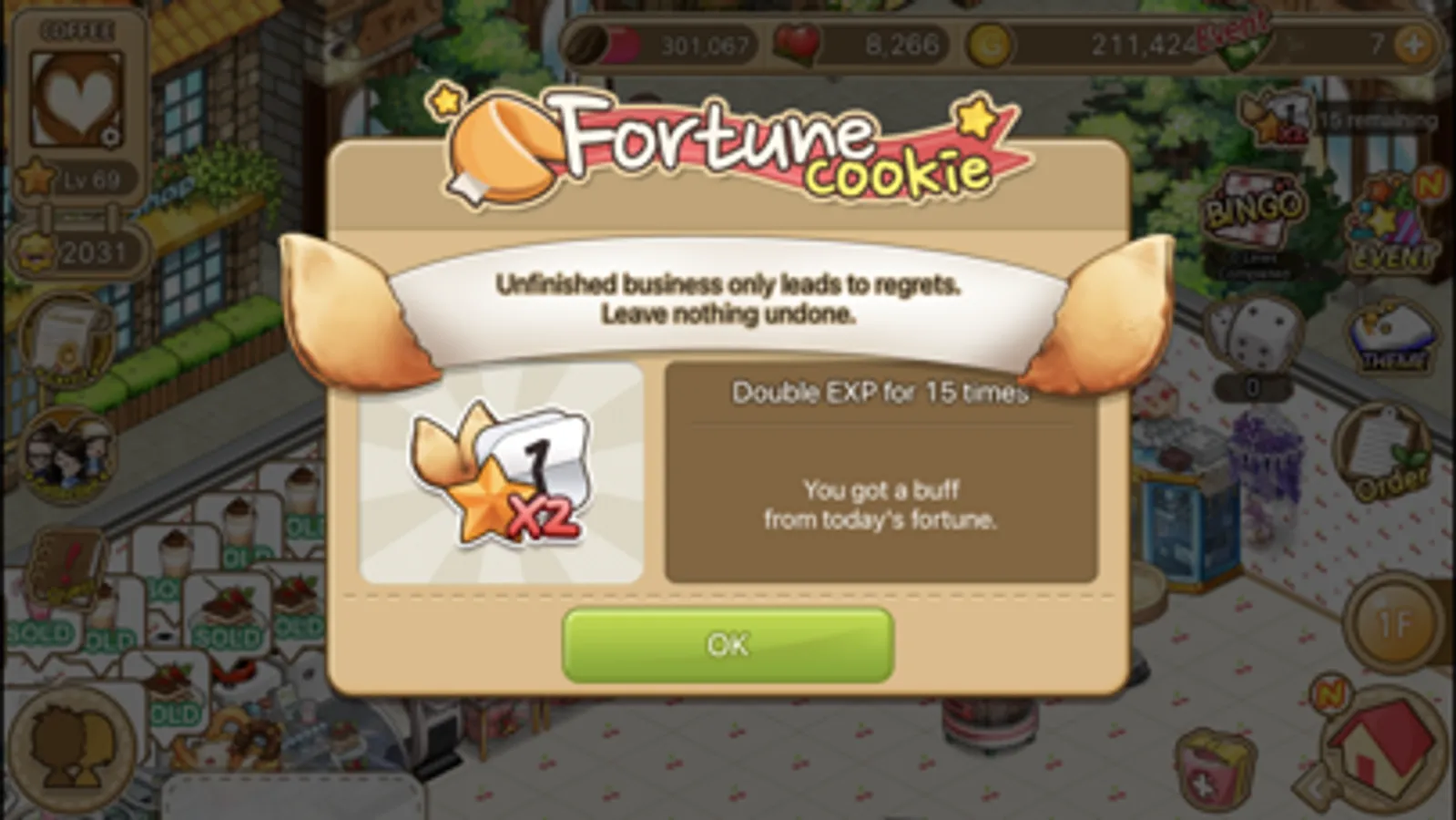 When you burn the coffee beans or when your staff is exhausted, let's ask your friends for help. Visit, help each other and you'll get a reward by sending a Clover to your friend!