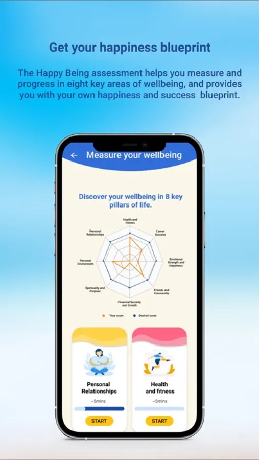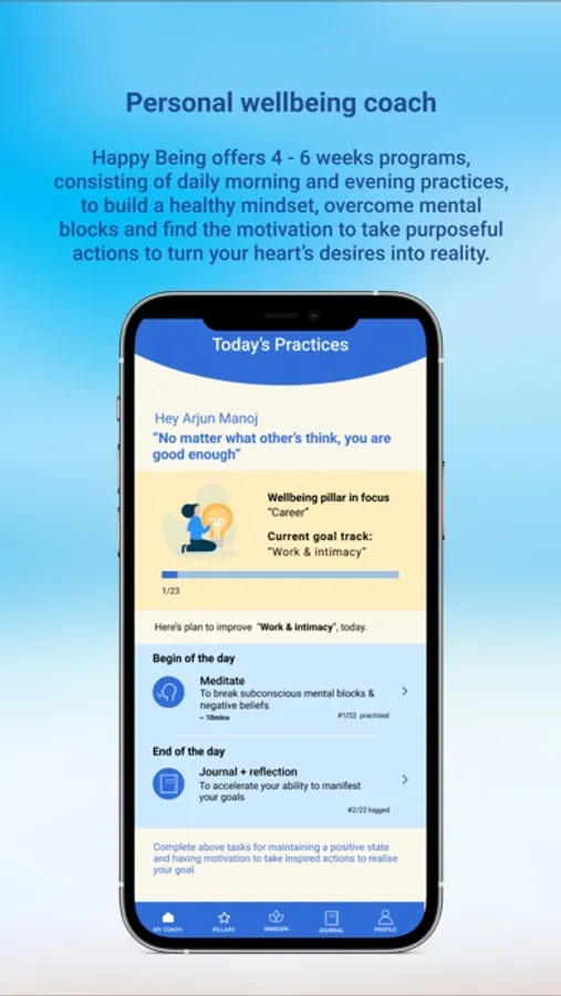 Though there are many apps to provide meditation practice, happy being is not just a set of mindfulness or meditation practice alone. It combines techniques from positive psychology, neuroscience, and mindfulness to give the best and fastest way to boost mental wellbeing and immunity like no other app existing in the market. The app starts with helping you measure wellbeing across 8 pillars of your wellbeing, personalized day to day activities to prioritize areas that are most critical to you. Happy Being personalizes activities and tools that are likely to work best for you.