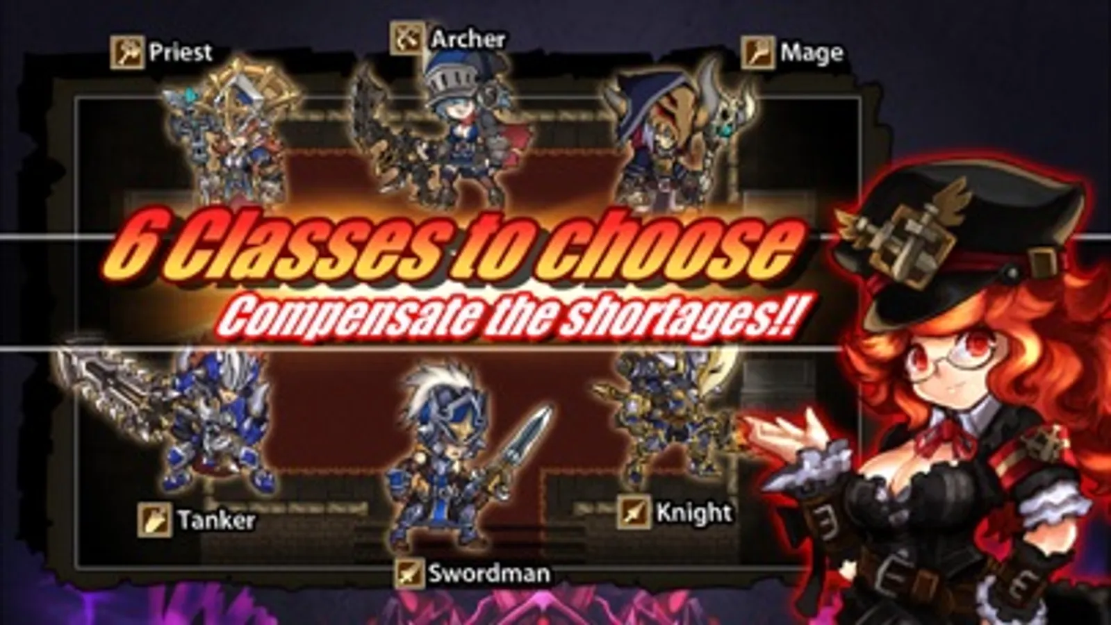 6 classes to choose: Swordman, Priest, Knight, Mage, Archer and Tanker.