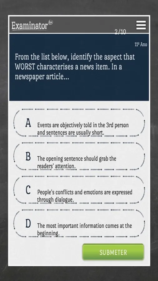 O Examinator prepara-te para os exames com centenas de perguntas desafiantes de várias disciplinas.